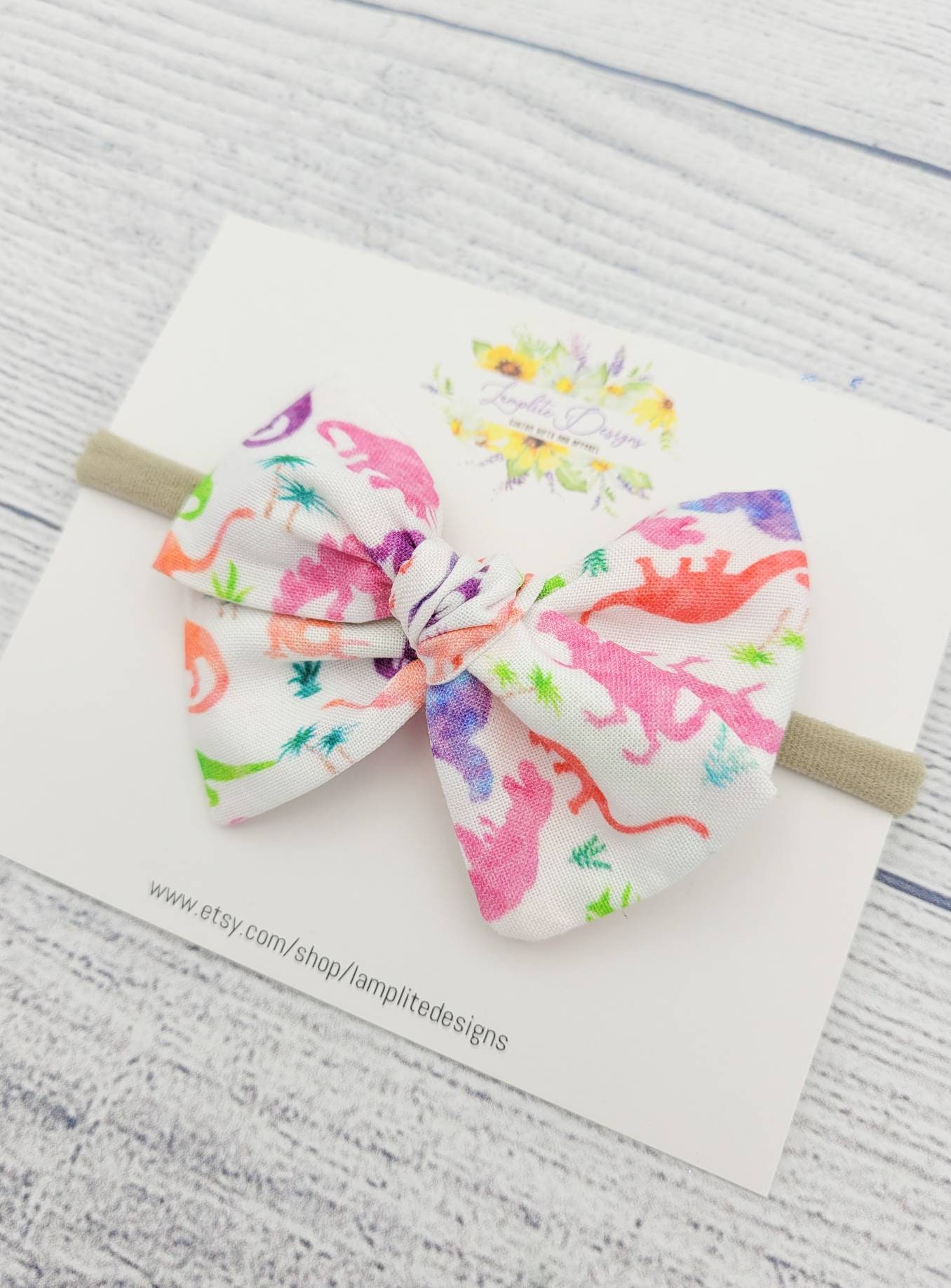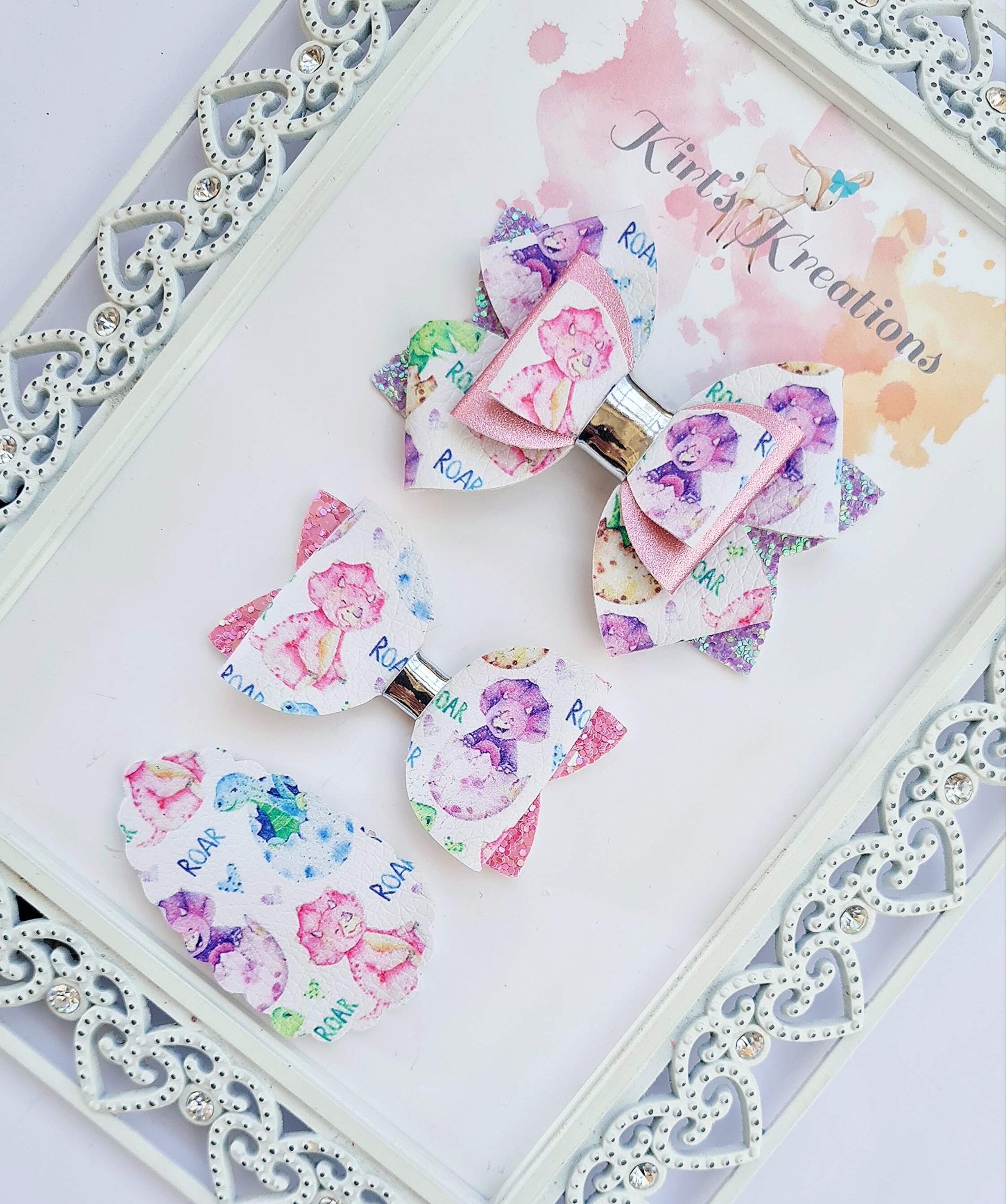 Web This cute dinosaur hair bow can be customized to match your outfits.